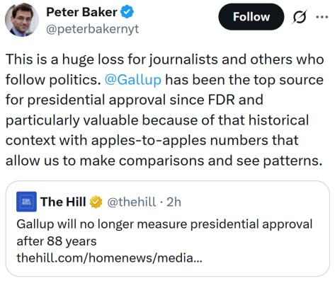 As Trump’s ratings sink, Gallup kills presidential approval poll after 88 years. Journalists are upset